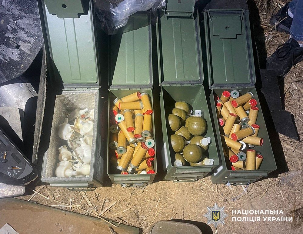 Поліцейські провели невідкладний обшук за його місцем проживання, у результаті якого вилучили понад пів сотні різних гранат, майже 1,3 тисячі набоїв, близько пів сотні запалів, вісім гранатометних пострілів, автомат Калашникова, димові шашки.