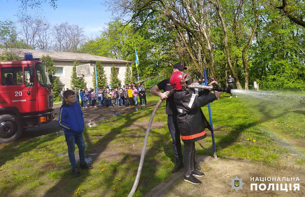 Окрім цього діти разом з поліцейськими та рятувальниками відпрацювали алгоритм дій при виникненні надзвичайних ситуацій різного характеру, сигналах повітряної тривоги та навчилися правил евакуації з приміщень.