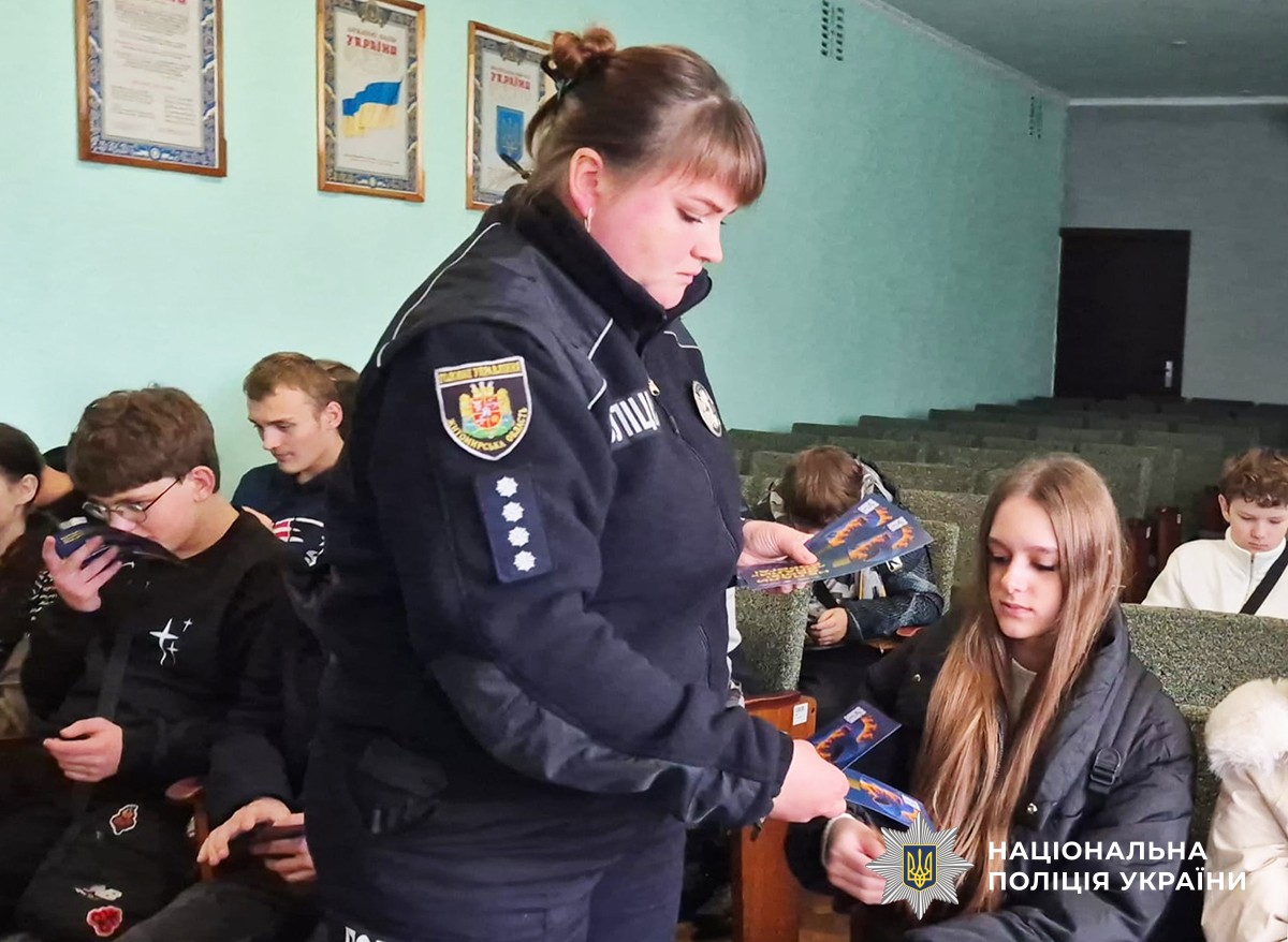 Ювенальні інспектори Ірина Гонгало та Марина Костенко спілкувалися з підлітками про онлайн-загрози. Поліцейські зосередили увагу на явищі кібербулінгу серед учнів. Діти отримали інформацію про те, як убезпечити себе від недоброзичливців у мережі та поради щодо безпечного ведення особистих сторінок у соціальних мережах. Також поліцейські розповіли про вербування підлітків агентами ворожих спецслужб та надали контакти, за якими потрібно звертатися у разі отримання такої пропозиції.