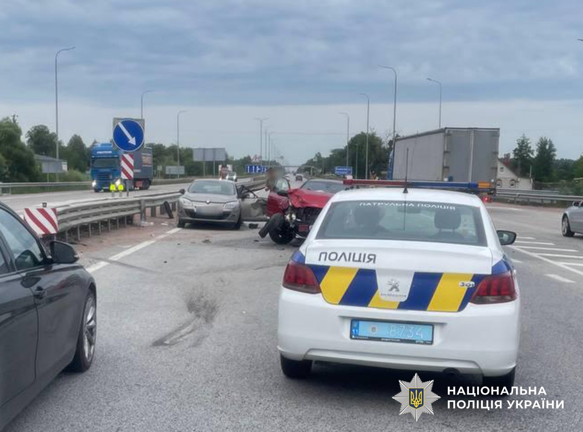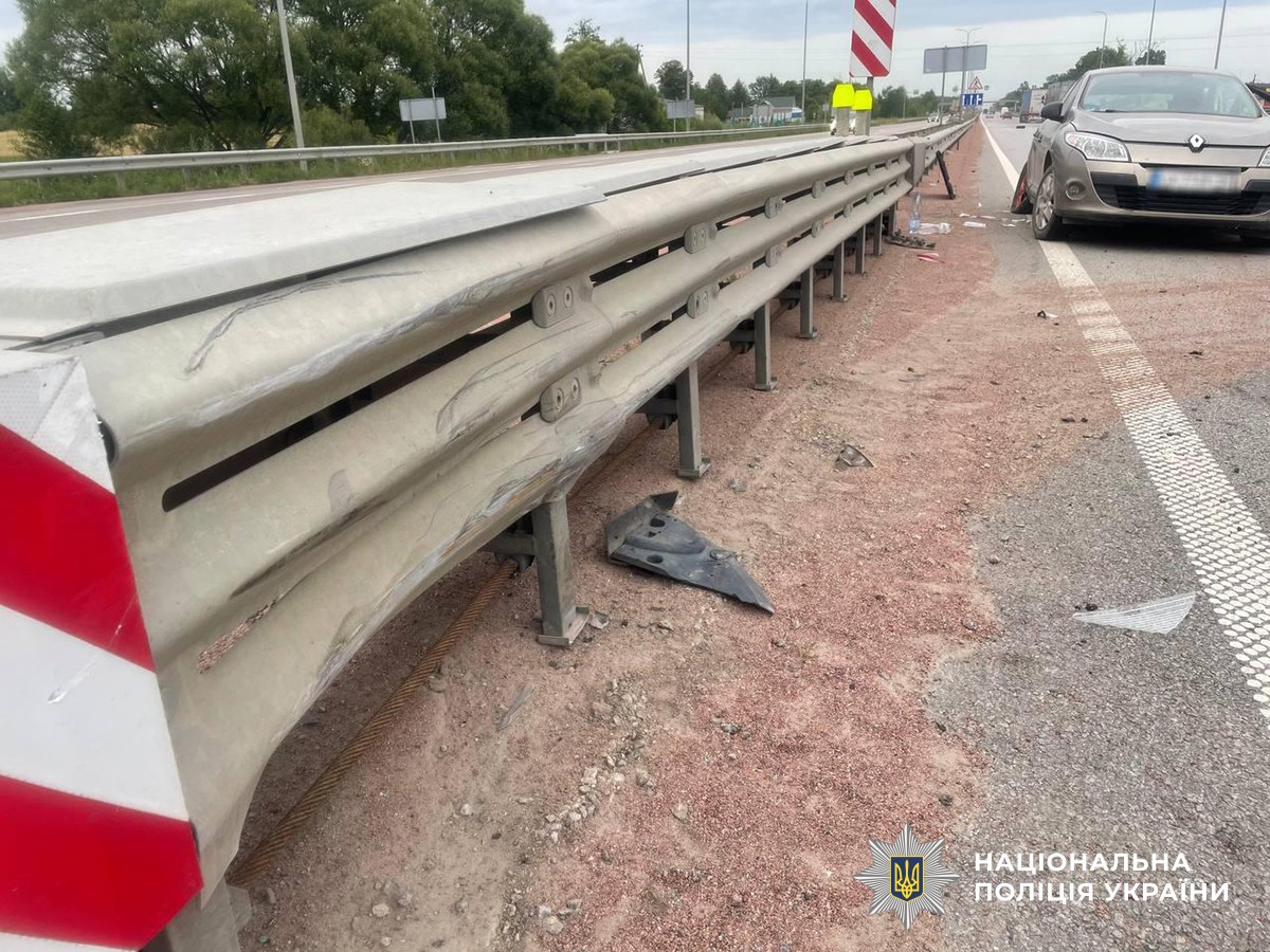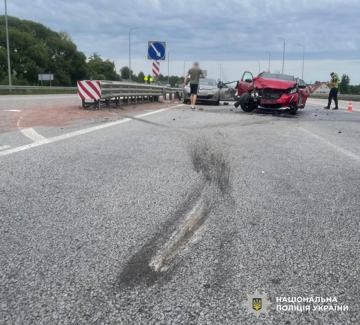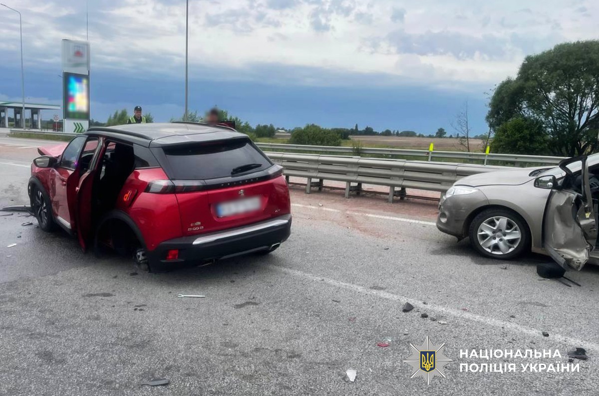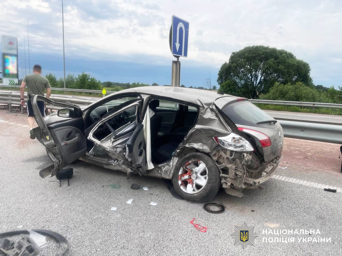 На автошляху сталося зіткнення автомобіля «Renault Megane», під керуванням 29-річної жительки Хмельниччини, та позашляховика «Peugeot 2008», за кермом якого перебував 31-річний киянин.