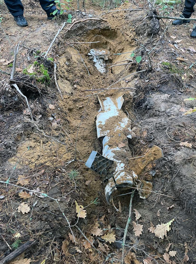 Предмет циліндричної форми характерного вигляду та уламки виявив працівник Коростенського лісгоспу, про що й повідомив до поліції.