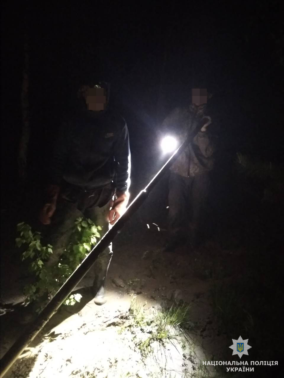 Двох чоловіків, які під світлом ліхтарів налагодили процес видобутку, члени рейдової групи виявили у ході відпрацювання місць можливого ведення незаконного промислу.