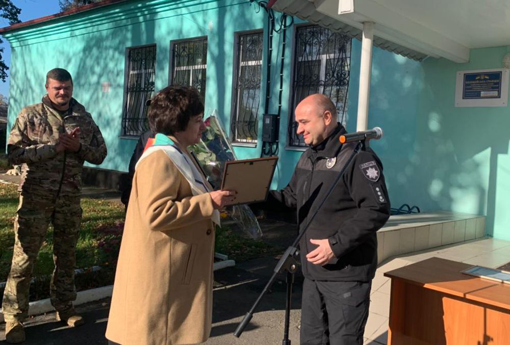 Начальник Головного управління Нацполіції Житомирщини Олег Трачук вручив Подяку голові громади Людмилі Малій за ґрунтовну підтримку і ініціативність у впровадженні безпекових проєктів.
