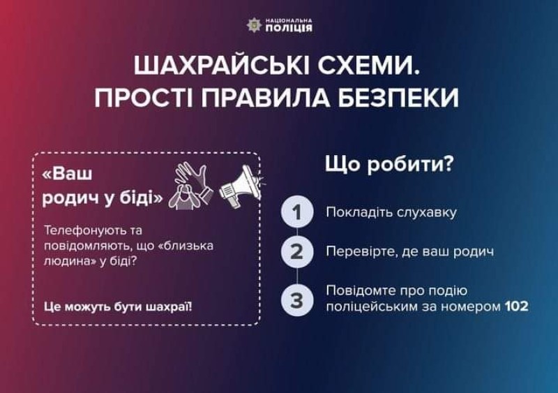 Водночас поліцейські нагадують: якщо вам надійшов подібний дзвінок, необхідно негайно зателефонувати родичам аби перевірити цю інформацію.