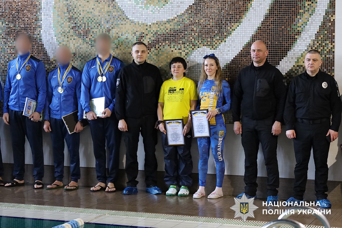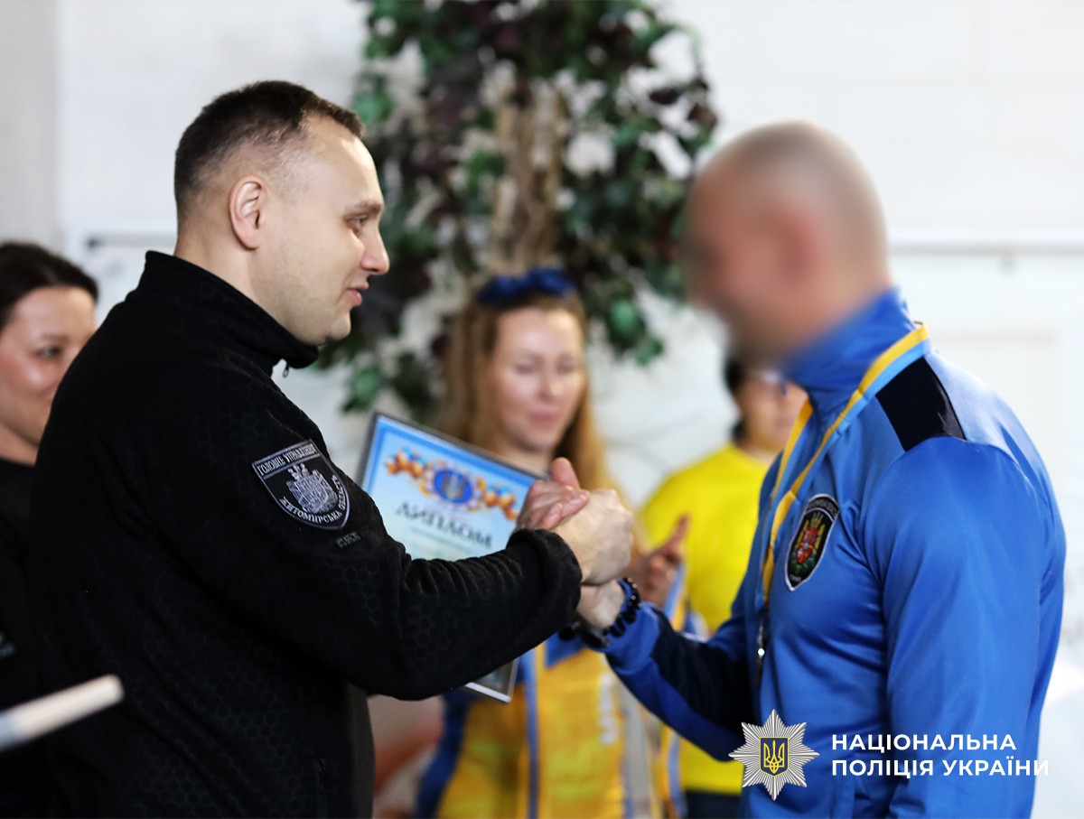 У номінації «50 м вільний стиль» 1 та 2 місце здобули представники ГУНП в Житомирській області, 3 місце – викладач ДУ «Житомирська академія поліції». Призові місця у номінації «50 метрів брас» отримали працівники поліції області. Начальник ГУНП Житомирщини Олександр Ковтун вручив переможцям нагороди, відзначивши братерство та спільний бойовий дух всіх учасників.