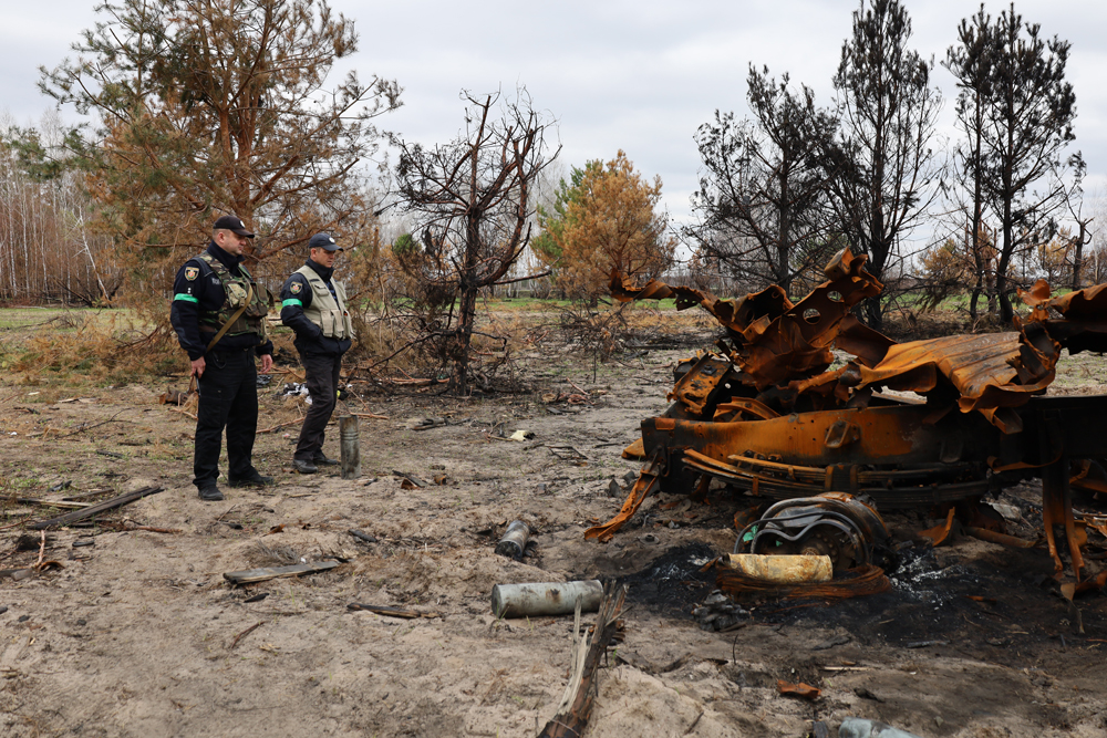 Коли слідчі проводили огляд місця події, там були пошкоджені машини, розкидано боєкомплекти, проводилась фіксація. Як видно, навколо все спалене.