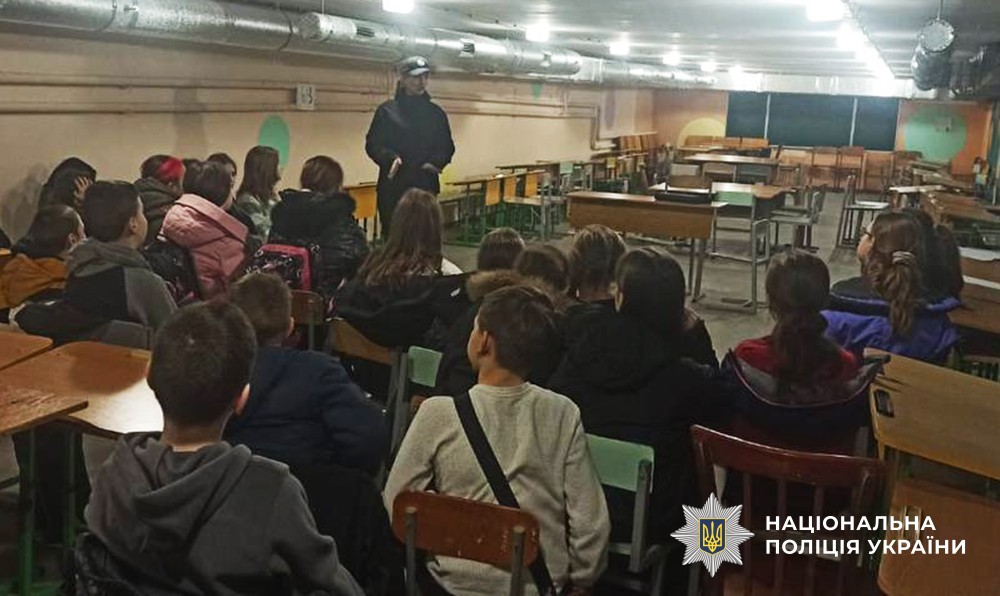 Урок з шестикласниками Новогуйвинського ліцею у зв’язку з виниклою небезпекою доводилося проводити у сховищі. Тож окрім іншого ювенальна інспекторка обговорила з дітьми необхідні дії під час сигналу повітряної тривоги та розповіла про речі, які необхідно покласти до своєї тривожної валізки.