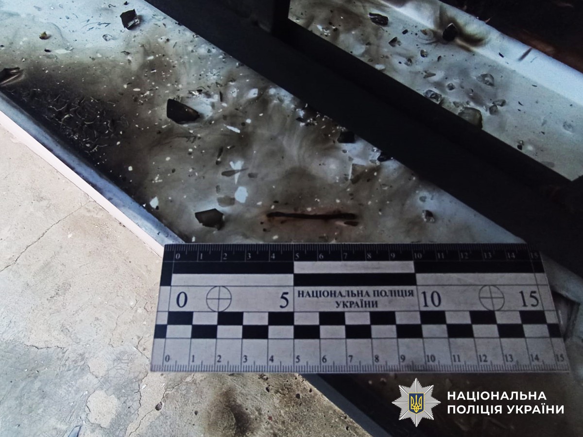 Під час огляду було вилучено пляшку із залишками рідини із запахом паливно-мастильних матеріалів та інші речові докази, що свідчили про умисні протиправні дії.