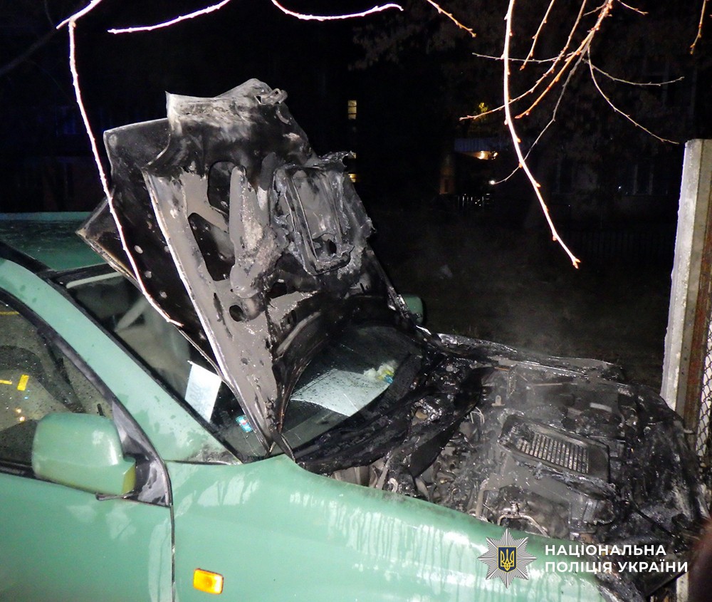 Повідомлення про займання автомобіля у дворі багатоповерхівки у центрі міста надійшло до поліції вночі 6 лютого. Пошкоджений Nissan X-Trail належав військовослужбовцю ЗСУ, а обставини свідчили про умисний підпал. Вже наступного дня поліцейські встановили причетного до злочину.