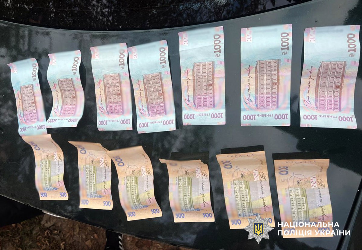Під час обшуків в автомобілі організатора та за місцями проживання вимагачів поліцією вилучено мобільні телефони, документи та грошові кошти в загальній сумі 18 200 гривень.