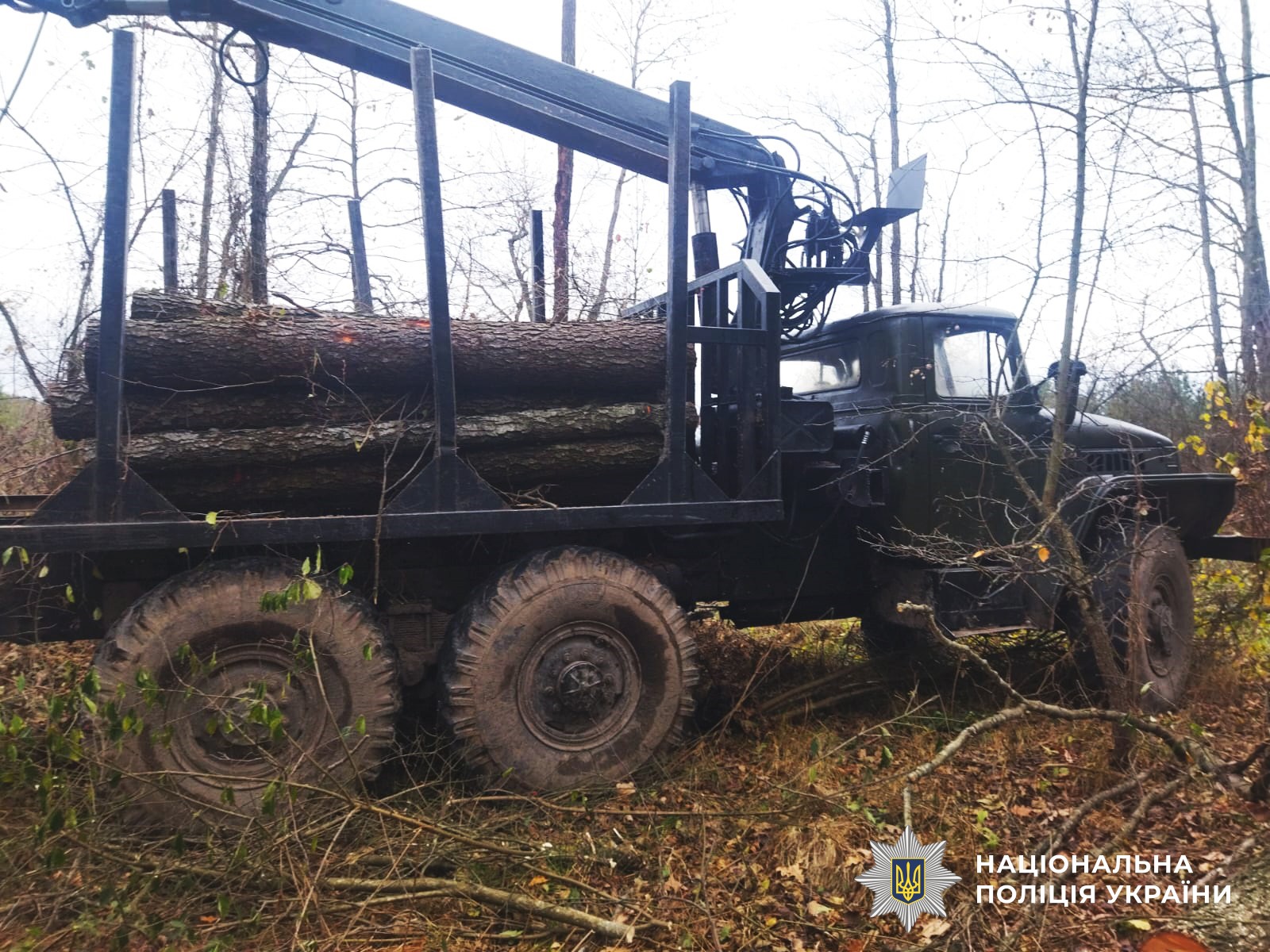 1 листопада до поліції звернулися працівники Соболівського лісгоспу з повідомленням про те, що на ввіреній території невідомі особи навантажують колоди дерев на автомобіль.