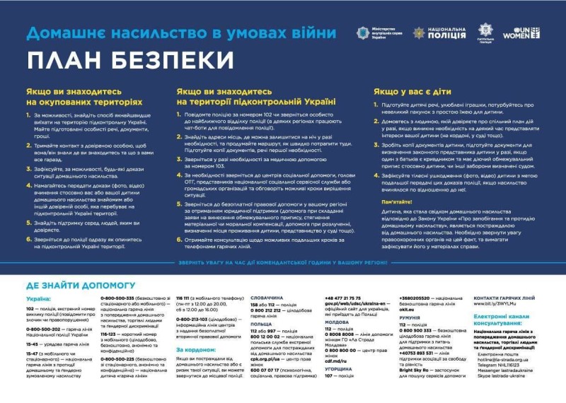 Окрім того, через вчинення систематичного домашнього насильства слідчі поліції розпочали понад 30 кримінальних проваджень за ст. 126-1 (Домашнє насильство) Кримінального Кодексу України. Наразі понад 20 обвинувальних актів скеровано до суду. Обвинуваченим загрожує покарання у вигляді громадських робіт на строк від 150 до 240 годин або пробаційний нагляд чи обмеження волі на строк до 5 років, або позбавлення волі на строк до 2 років.