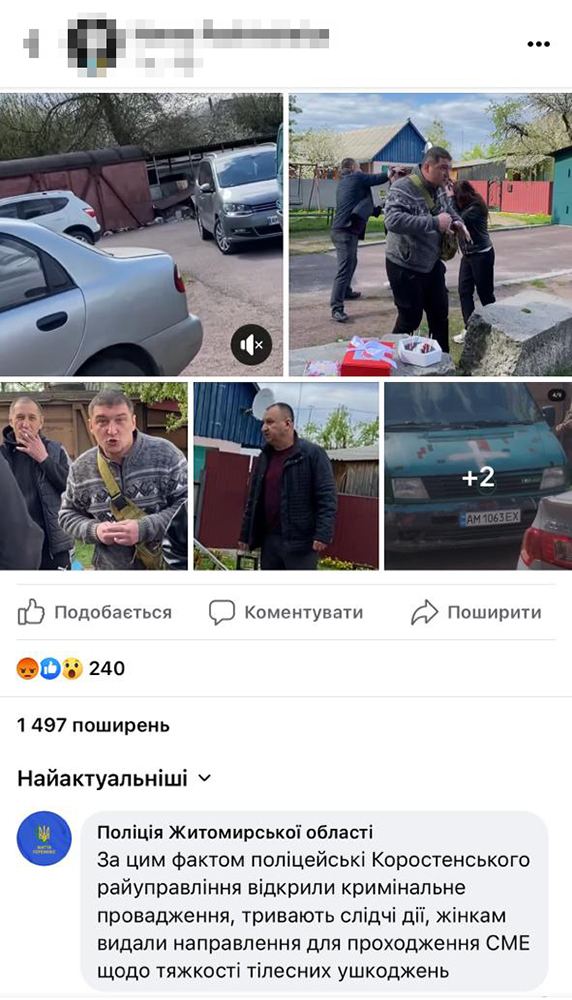 Офіційно інформуємо, що увечері 28 квітня до Коростенського райуправління поліції звернулися дві жительки райцентру із повідомленням про нанесення їм тілесних ушкоджень.