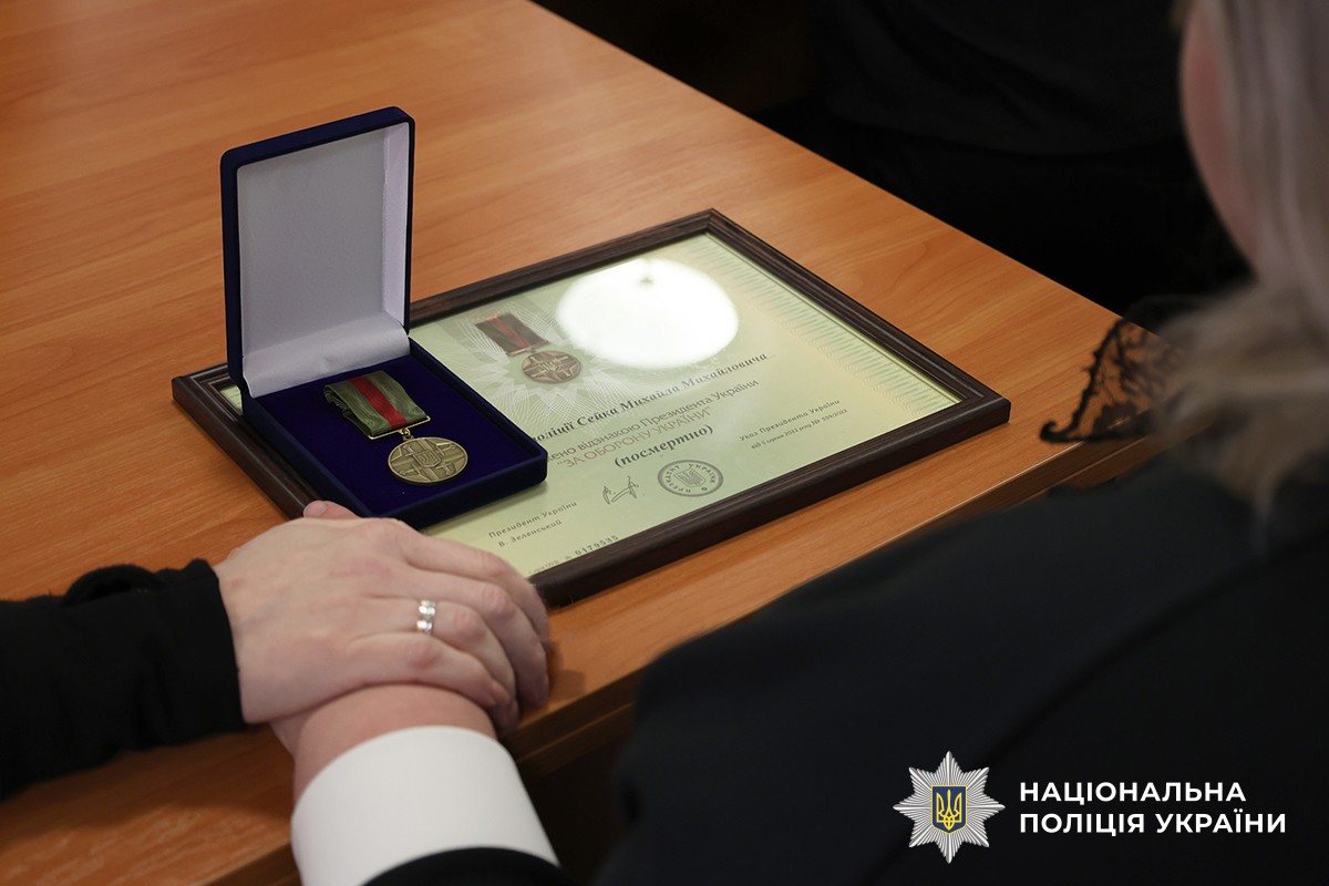 «За оборону України»: у Житомирі родинам загиблих поліцейських передали державні відзнаки