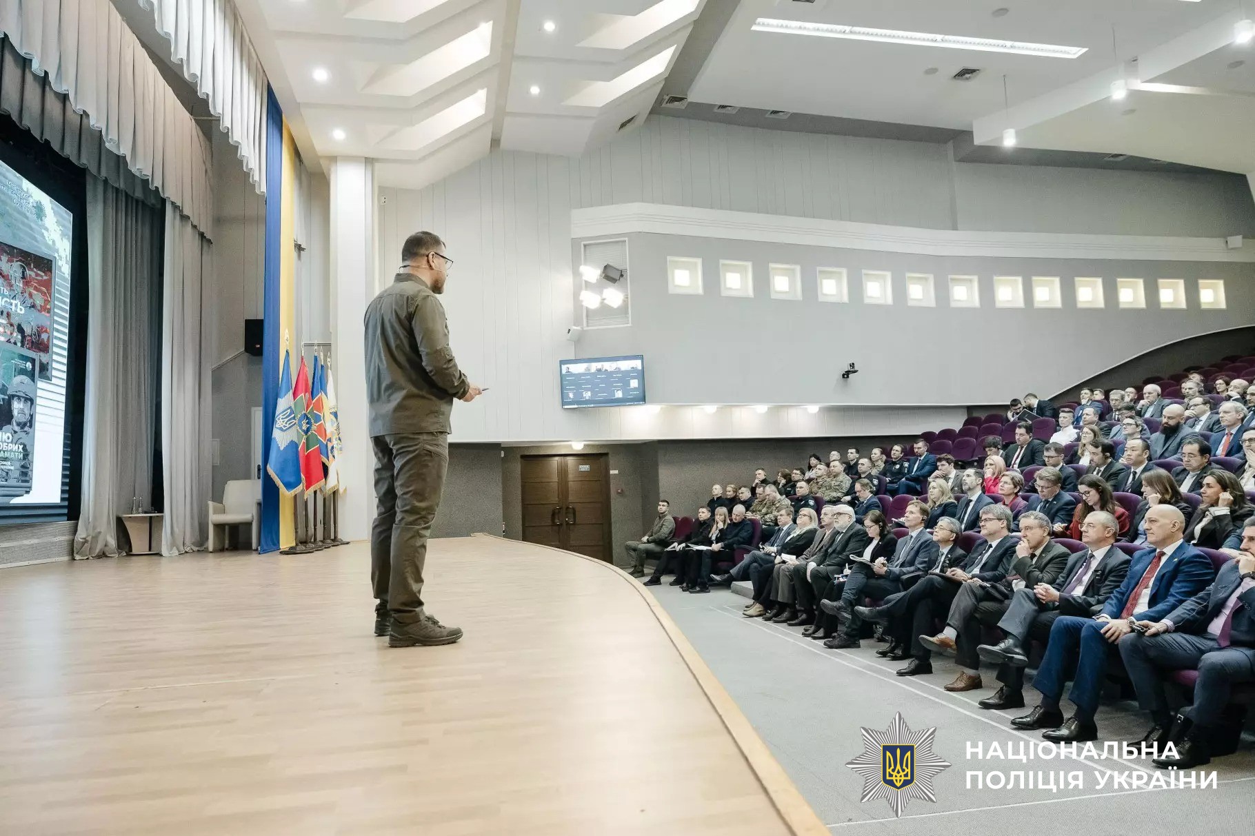 До гостей звернувся Міністр внутрішніх справ України Ігор Клименко, який детальніше розповів присутнім про розбудову нової архітектури безпеки України за допомогою органів системи МВС.