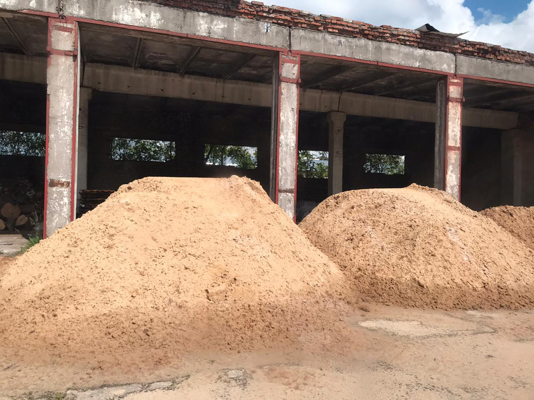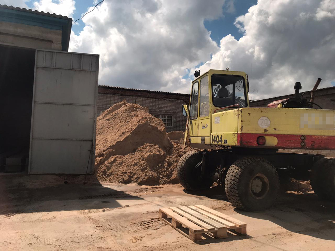 У серпні 2021 року поліцейські провели обшук у м. Коростені, на ділянці, що належить підприємцю. Там виявили автомобілі з піском у причепах та уже розвантажені тонни суміші.