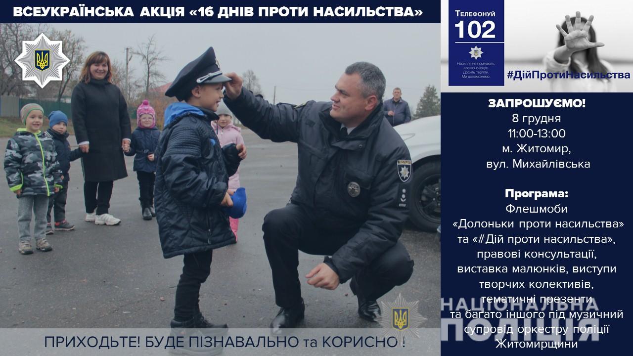 Житомирська поліція запрошує на всеукраїнську тематичну акцію «#ДійПротиНасильства»