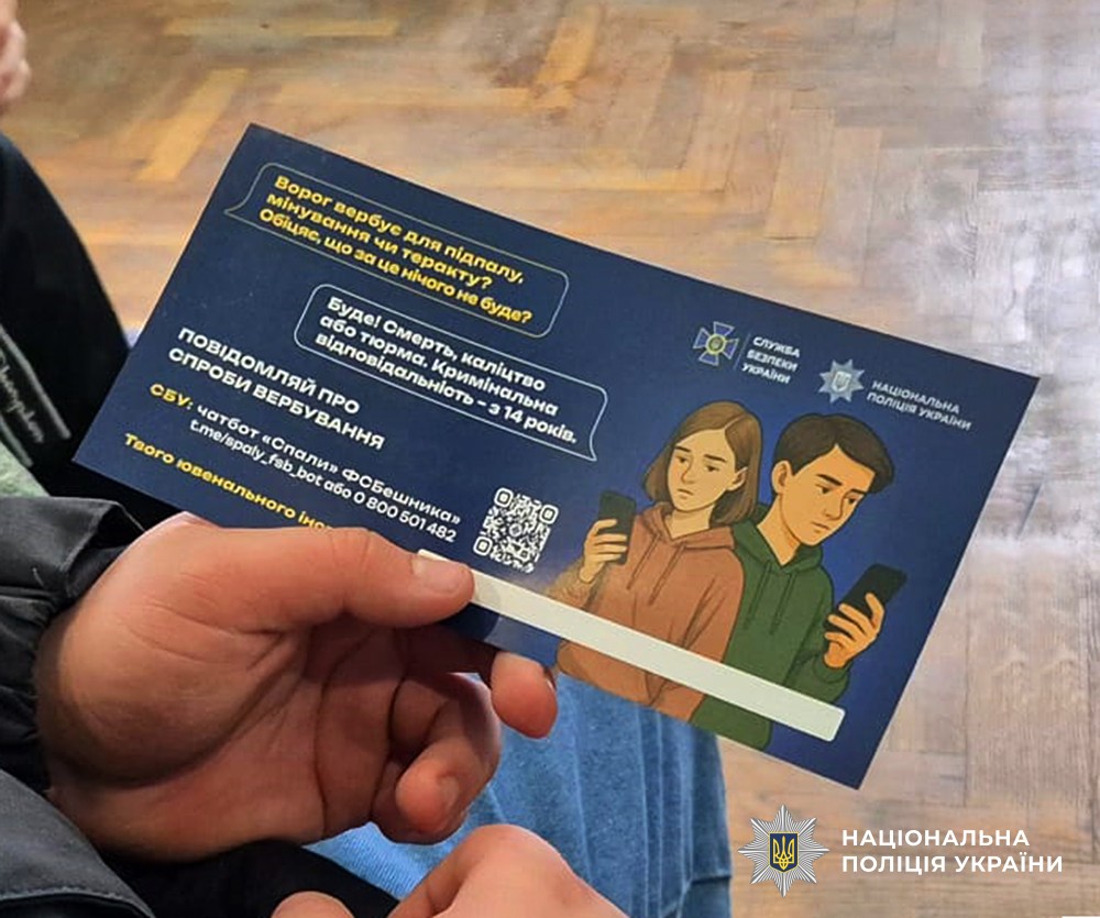 Окремою темою для розмови стала ворожа пропаганда та її вплив на молодь. Ювенальні інспекторки застерегли підлітків від пошуків легкого заробітку в онлайн-просторі, особливо це стосувалося виконання специфічних завдань, пов’язаних з підготовкою терористичних актів. Поліцейські навели дітям приклади того, як бажання легких грошей мало фатальний результат, та наголосили, що відповідальність за такі злочини настає з 14 років.