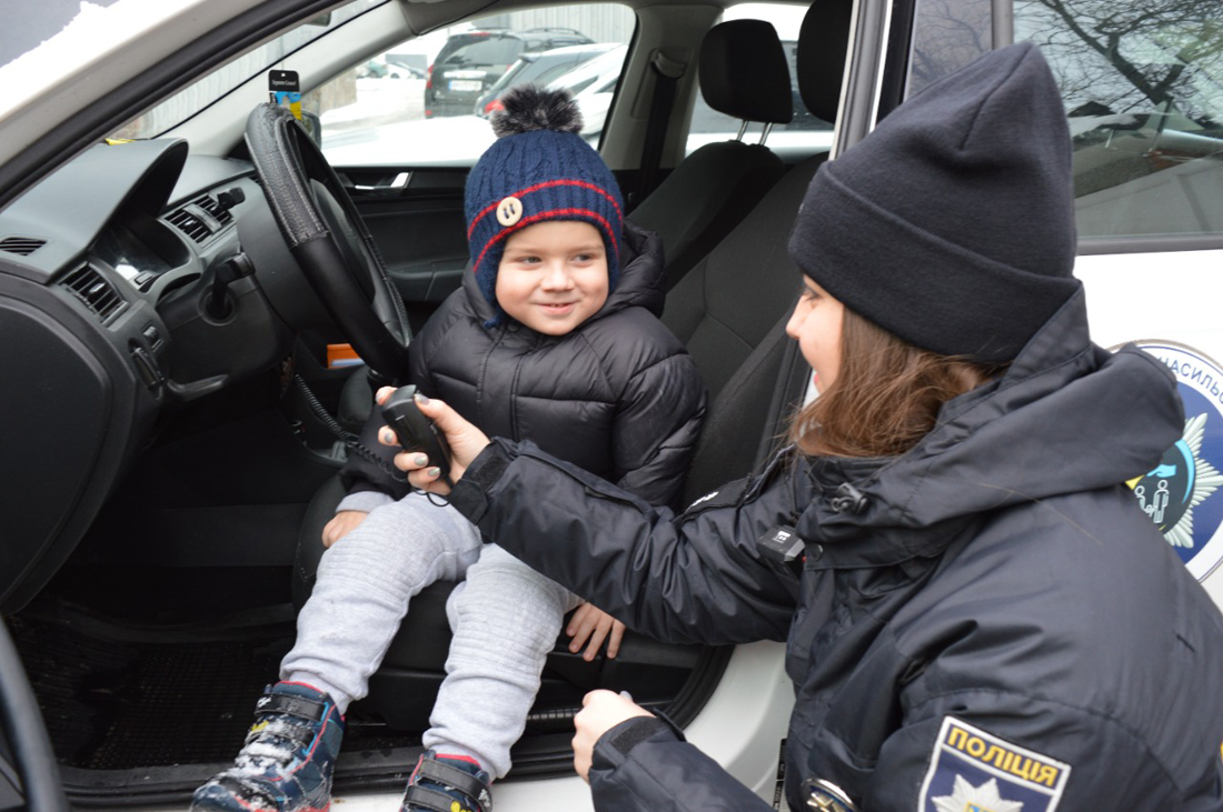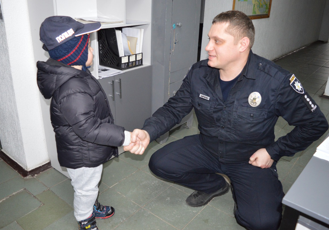 Хлопчик зустрів гостей радісною і щирою посмішкою. Він із захопленням розглядав амуніцію поліцейських, як справжній дорослий, ділився з ними своїми уявленнями про діяльність правоохоронців.