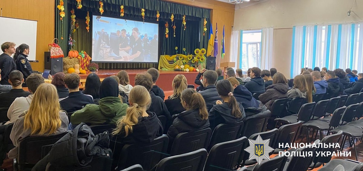 Вони ознайомили підлітків з переліком закладів вищої освіти, які здійснюють підготовку майбутніх поліцейських. Також спікери розповіли про факультети й спеціальності, які можуть здобути курсанти.