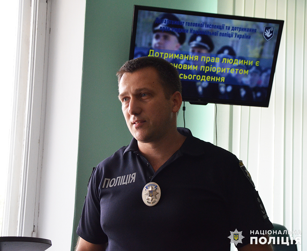 Також студенти цікавились, як стати поліцейським. Про конкурс та відбір на посади до Національної поліції розповів начальник сектору кадрового забезпечення Житомирського райуправління Олександр Шаров.