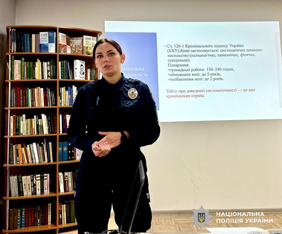 Під час занять поліцейські поінформували підлітків про основні форми домашнього насильства: фізичне, психологічне, економічне та сексуальне. Також пояснили, яка поведінка може свідчити про небезпеку, як правильно реагувати на такі ситуації та чому важливо не замовчувати проблему.