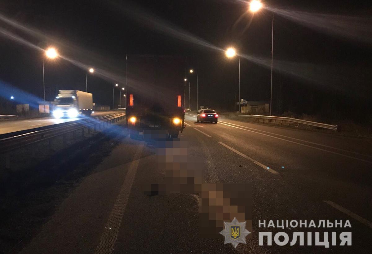 Попередньо встановлено, що близько 18 години на 214 км автодороги Київ-Чоп 48-річний житель м. Львова, керуючи автомобілем «Renault Premium», скоїв наїзд на невідомого чоловіка, який перетинав проїзну частину, поза межами пішохідного переходу.